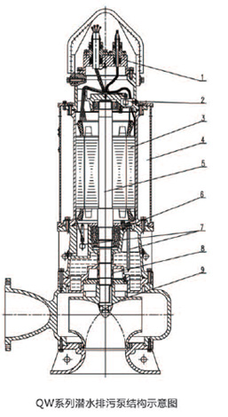 QW系列潛水排污泵結(jié)構(gòu)緊湊,并設(shè)置了各種狀態(tài)顯示及保護(hù)裝置,使得泵運(yùn)行安全、可靠。