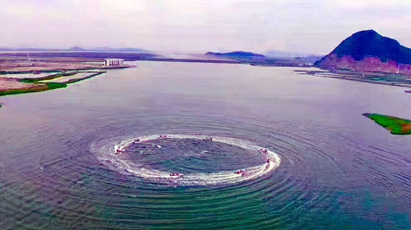 與美景交相輝映的,是漂浮在水面的那一抹抹橙色!對,與之相連的是就是我們的防洪搶險泵!